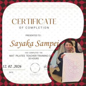 この度、ピラティスの指導資格を取得いたしました。